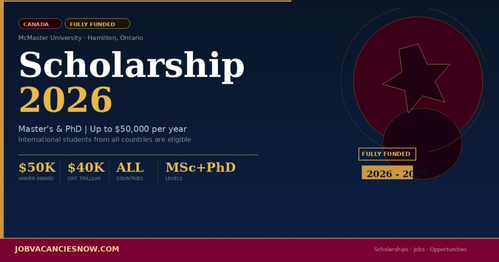 If you are planning to study in Canada with financial support, the McMaster University Scholarship is one of the best opportunities available for international students. This scholarship provides fully funded programs at Canadian universities across a wide range of fields. In this article, we will explain everything you need to know about the McMaster University Scholarship, including its benefits, eligibility criteria, required documents, and a detailed step-by-step application process to help you apply successfully.